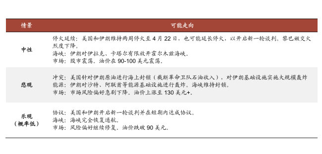 美伊谈崩,未来走向有三种可能 谈判破裂影响几何 关键词: 2026-04-13 09:23:17  凤凰网 4月12日,美国和伊朗的谈判未取得共识。美国副总统万斯表示,美方在谈判中已展现出灵活性与诚意,并明确列出可接受与不可接受的条件,但伊朗方面选择不接受。伊朗则认为,美国的过分要求阻碍了共同框架和协议的达成。对于后续进展,美国希望尽快达成协议,而伊朗可能认为随着时间推移,原油供给缺口进一步累积,其优势会更大,因此不愿在短期内作出让步。双方还需要一段时间权衡利弊,可能出现以下几种情景:一种是美伊停火延续,甚至到期后再延长,为下一轮谈判做准备。霍尔木兹海峡可能会有条件放开,优先放行与伊朗关系友好的船只。这种情况下,油价可能在90-100美元/桶之间波动,海外股市也可能保持震荡状态。另一种情景是美伊冲突再起。美国可能发动有限地面战,并对伊朗原油实施海上封锁,以截断革命卫队的石油收入。如果美国打击伊朗基础设施,作为反击,伊朗可能攻击海湾国家能源设施。在这种情况下,能源设施损失意味着原油缺口从运输缺口转为生产缺口,油价可能上涨至130美元/桶以上,全球经济衰退预期升温,海外风险偏好急剧下降。还有一种可能性较小的情景是美国和伊朗在短期内达成协议。如果这种情况发生,市场风险偏好将进一步修复,油价可能跌破90美元/桶。 (责任编辑:zx0176)